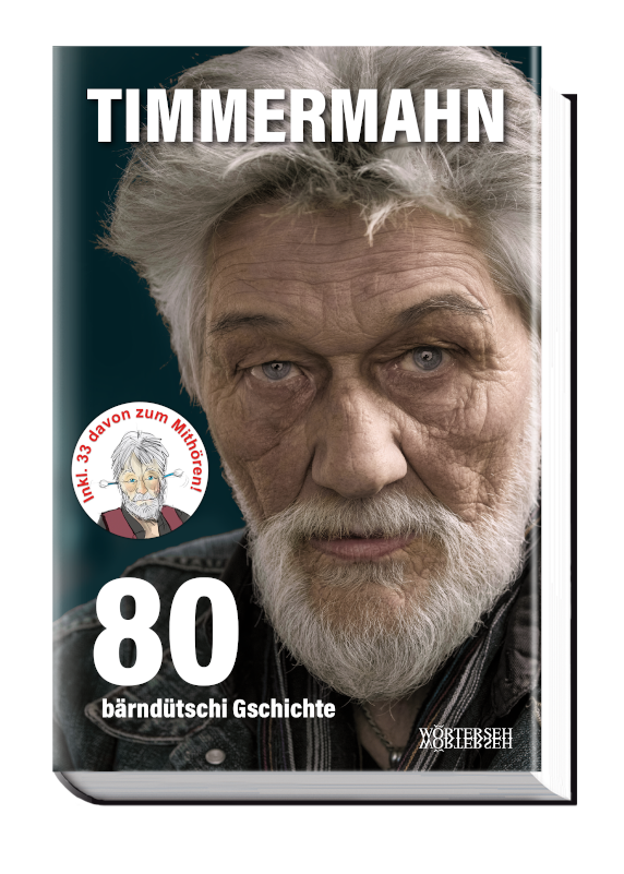 Meister Timmermahn, wie er von seinen Freunden genannt wird, ist Maler, Poet, Erzähler, Autor und Regisseur. Er zählt zu den schillerndsten Figuren der Schweizer Kunst- und Kulturszene. Seine humorvollen Mundartgeschichten entführen uns in unvergleichlichem Berndeutsch in bunte, emotionale Welten. Die grossen Momente in kleinen Alltagsszenen zu erkennen, sie fantasievoll auszuschmücken, bis an den Abgrund zu strapazieren und am Ende mit viel Liebe und Empathie für die Figuren zu einem guten Ende zu bringen – das ist die Stärke des scharfsinnigen Beobachters mitmenschlichen Zusammenspiels. Timmermahn steht für charmante Eigenheit. Seine Kunst ist es, mit Buchstaben nach Lust und Laune zu jonglieren und Wortschöpfungen entstehen zu lassen. Das Spiel mit dem Sprachwitz beherrscht er wie kaum ein anderer. Seit Jahren wird Timmermahn von seinem Publikum bekniet, seine Geschichten nicht nur auf der Bühne zu performen, sondern abzudrucken und sie so auch auf eine andere Art zugänglich zu machen. Dies war immer ein absolutes Tabu für ihn. Doch zu seinem Achtzigsten drückt er beide Augen zu und veröffentlicht achtzig seiner berndeutschen Geschichten in Buchform. Danke für diesen wertvollen Schatz, Timmermahn!