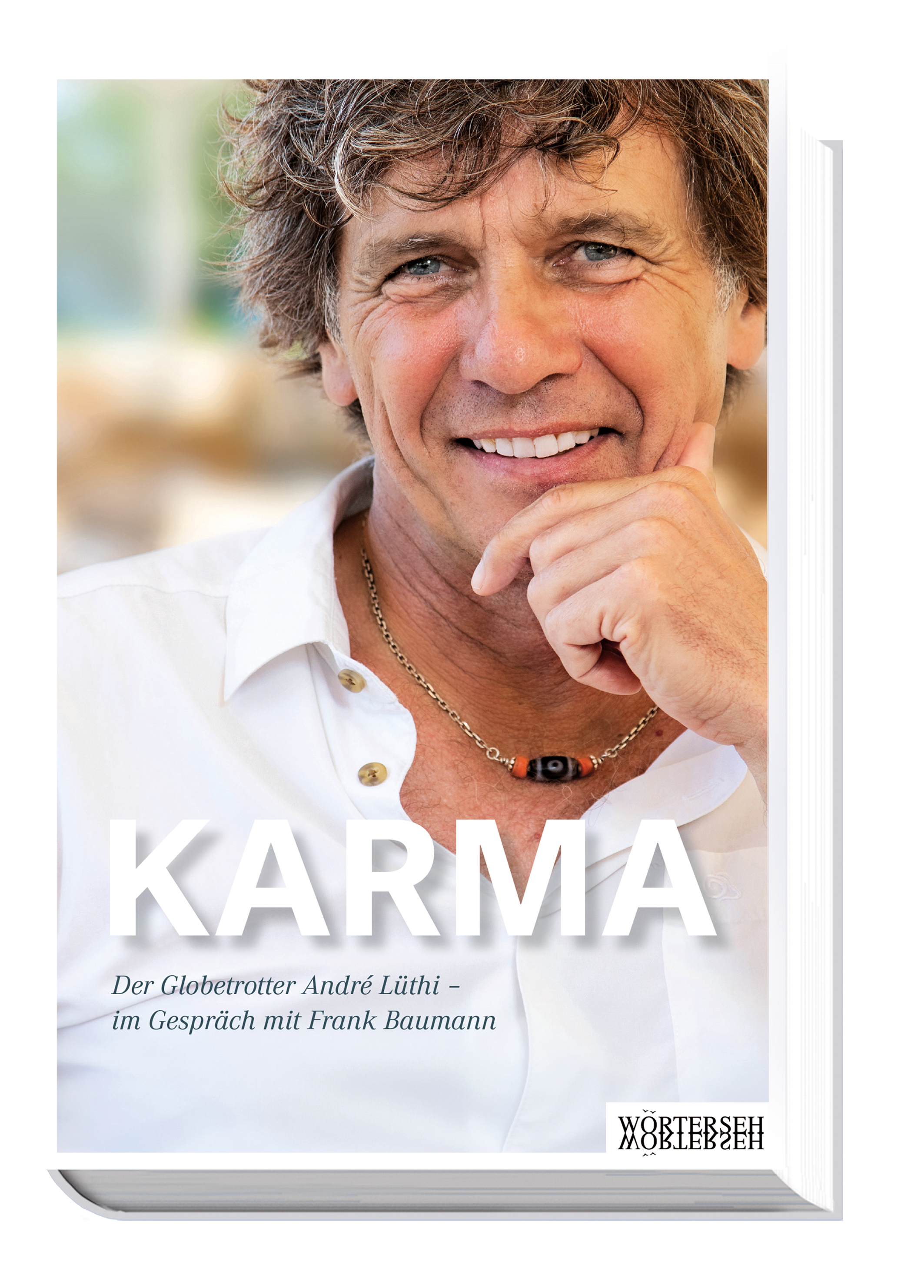 »Karma« ist keine Biografie im herkömmlichen Sinn. Es ist ein gedrucktes Hörvergnügen – ein ebenso langes wie kurzweiliges Gespräch zwischen dem Autor Frank Baumann und seinem Protagonisten, dem gelernten Bäcker André Lüthi, dessen Reisen in die grosse weite Welt in einer Karriere gipfelten, die ihresgleichen sucht. Geführt wurde das Gespräch in Ändus zweiter Heimat Nepal – jeweils im Anschluss an lange Tage oder haarsträubende Motorradfahrten über staubige Holperwege hinaus ins Hinterland der Millionen-Metropole Kathmandu. Ein Abenteuer, das den Boden für grundehrliche Gespräche gelegt hat. Gespräche über grosses Glück und vermeintliches Unglück, über Moral, über den Drang, aus- und aufzubrechen, und über die Notwendigkeit, manchmal auch Umwege zu machen. Über den Wertewandel unserer Zeit, die Liebe und das Glück, sie zu finden, über Jo Siffert, Winnetou und das Feu sacré, das innere Feuer, das nur dann lodert, wenn wir nicht vergessen, es zu schüren.
